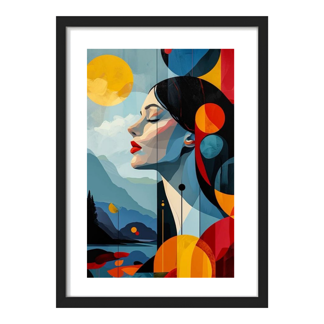This artwork is a beautiful fusion of portraiture and landscape art, created in a modern abstract style.